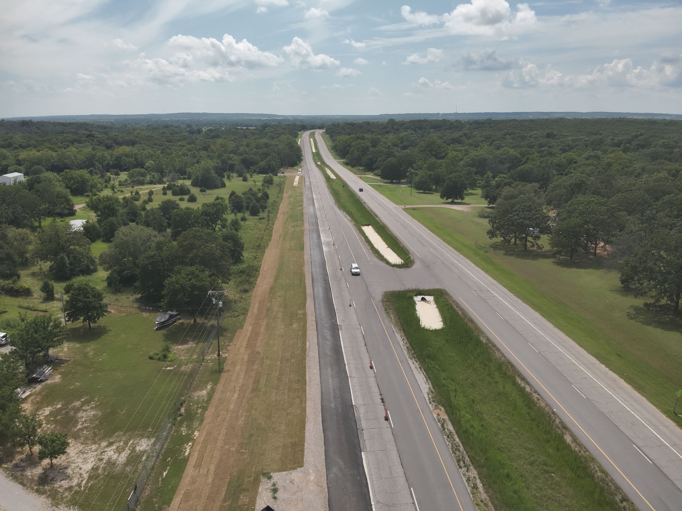 As of June 3, 2025: This project is 65% complete. The contractor finished the base and subgrade for the shoulder and started placing asphalt base on the shoulder. Work also continues on waterline relocation.